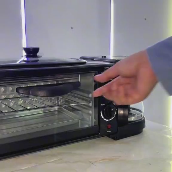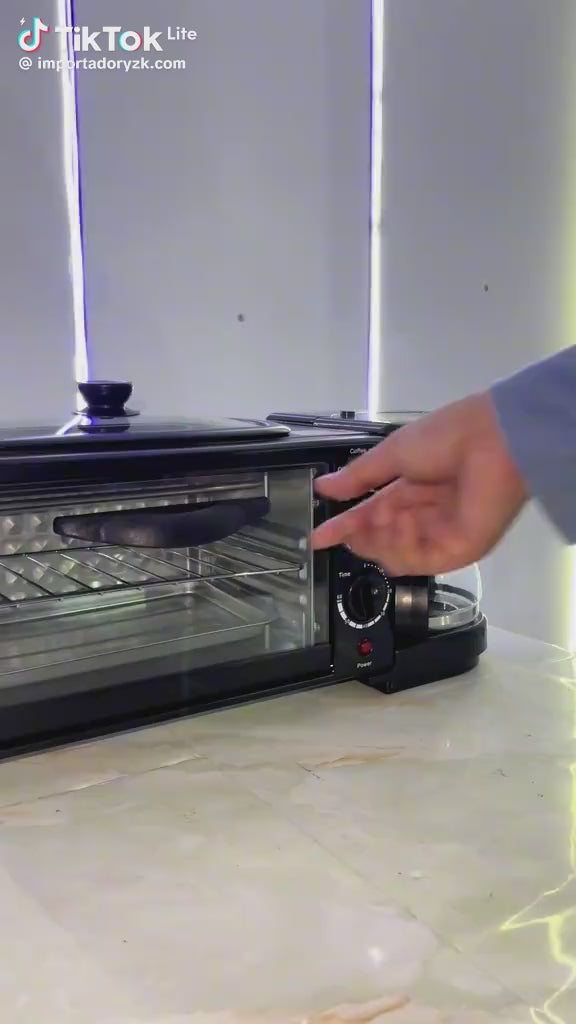 Haz que tus mañanas sean más deliciosas y eficientes con esta estación de desayuno 3 en 1, diseñada para preparar café, tostadas y huevos al mismo tiempo. ¡Ideal para hogares ocupados o amantes del desayuno completo!